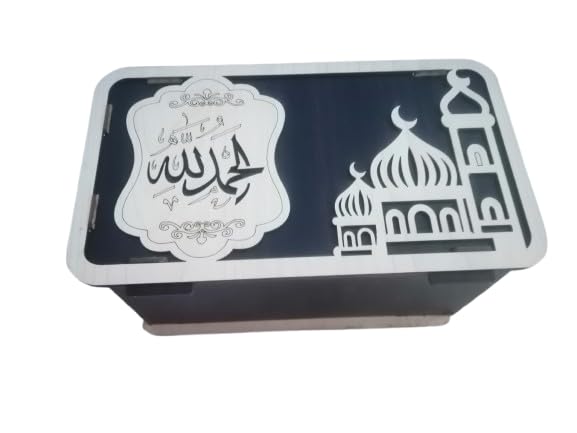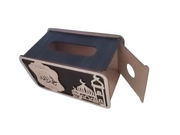 Generic - علبة مناديل خشب بديكوراسلامي،حامل مناديل ديكور للمكتب وغرفة المعيشةوغرفة النوم والسيارة، بفتحة جانبية لوضع المناديل لون بني غامق في بيج