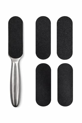 SNS SECRET NAILS SYSTEM - مبرد قدم باديكير ومزيل مسامير القدم للبشرة الصلبة، مبرد قدم من الستانلس ستيل مع 4 وسادات حبيبية بديلة، اداة تنظيف القدمين مزدوجة الجوانب للاستخدام الرطب او الجاف، اداة العناية بالقدم في المنزل