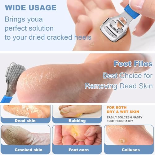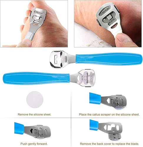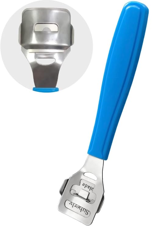 - أداة إزالة الجلد الميت من القدم مصنوع من الفولاذ المقاوم للصدأ للاستخدام مع شفرات الحلاقة التي تُستعمل لمرة واحدة، وتم شحذها للعناية السريعة بالبشرة. ينزلق مبرد القدم هذا للجلد الميت على قدمك، لإزالة الجلد الميت ومنحك أقدام ناعمة.
