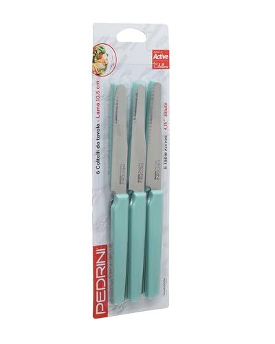 PEDRINI - طقم سكاكين مطبخ من الفولاذ المقاوم للصدأ من بيدريني، 6 قطع، موديل 04GD273، فضي/أخضر مينت