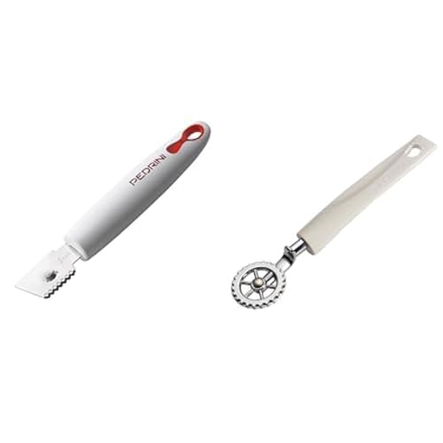 PEDRINI - مقشرة وأداة تشكيل وتقطيع المكرونة من الستانلس ستيل ليلو بيدريني أبيض - 220 × 65 25 سم + أداة تجعيد خليط معدني الزنك والكروم والبلاستيك