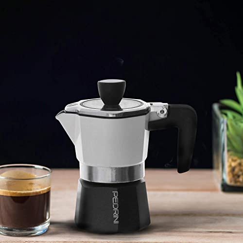 PEDRINI - ماكينة صنع القهوة الومنيوم من بيدريني، 1 كوب - رمادي داكن وابيض