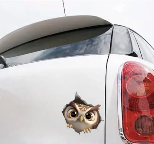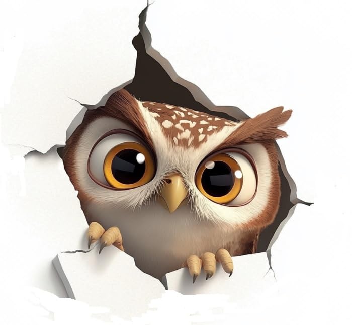 MAKTEM - ملصق سيارة ثلاثي الأبعاد لبومة تنظر من جدار مكسور – تصميم ثلاثي الأبعاد بتأثير الجدار المتشقق، مصنوع من فينيل قابل للإزالة لتزيين زجاج السيارة أو الصدام (تصميم كرتوني ثلاثي الأبعاد)
