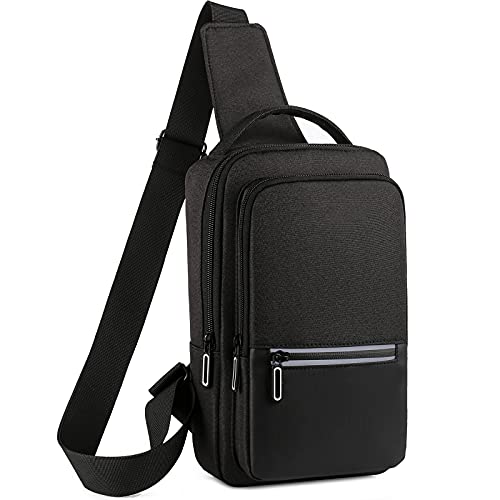 Peicees - شنطة كتف كاجوال للرجال والنساء من بيسييس صدر صغيرة كروس ظهر للمشي لمسافات طويلة والعمل وركوب الدراجات والسفر أسود مقاس واحد