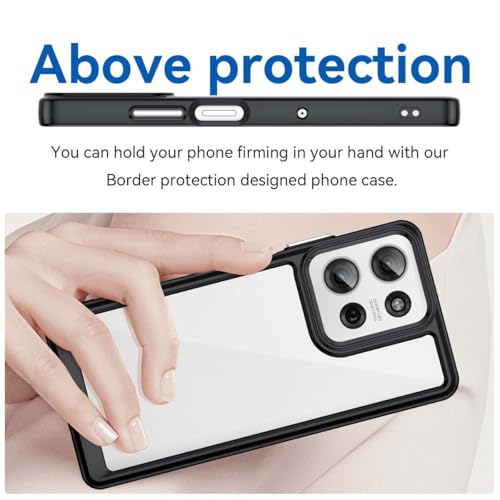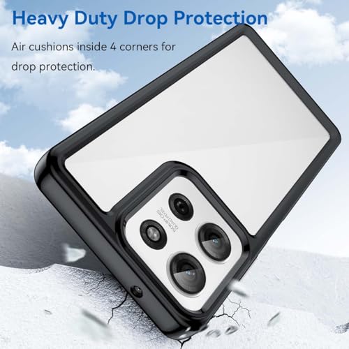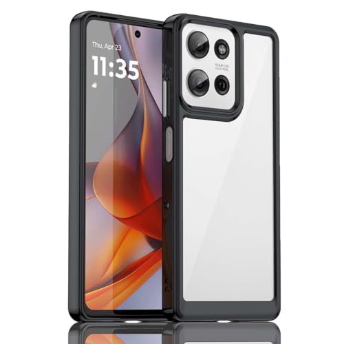 PEIYE - جراب حماية شفاف لموبايل موتورولا موتو G75 شبكة الجيل الخامس 5G بإطار من السيليكون والبولي يوريثين الحراري الناعم وظهر شفاف صلب مضاد للصدمات ممتص للصدمات من بي اي واي اي (حواف سوداء)