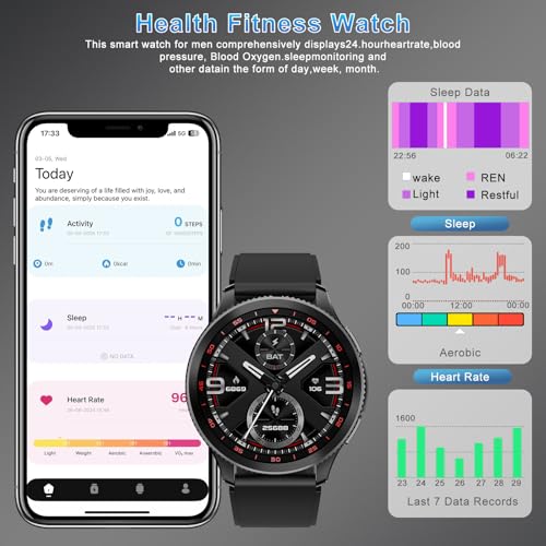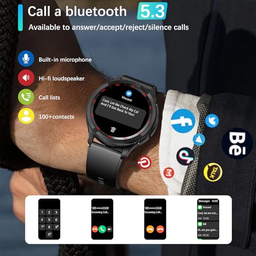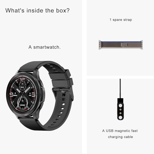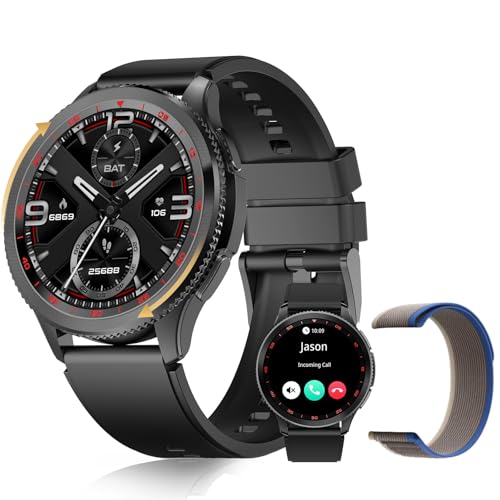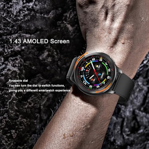 PEJE - ساعة ذكية ريفو بمينا قابل للدوران للرجال للرد وإجراء المكالمات شاشة اموليد 1.43 وأكثر من 123 وضع رياضي مقاومة للماء على عمق 3 م ومراقب معدل نبضات القلب والنوم متوافقة مع أندرويد وiOS من بيجي، أسود