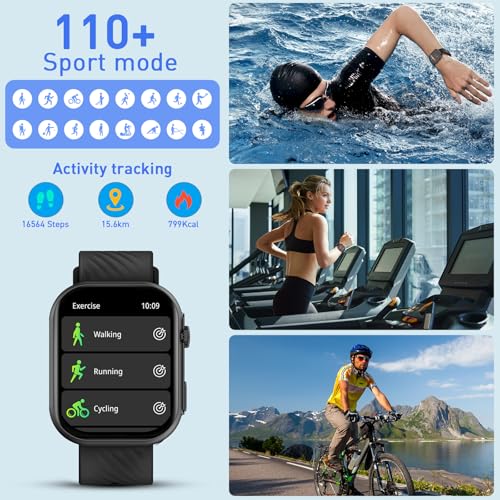 PEJE - ساعة ذكية بلوتوث 2.13 بوصة،إمكانية الرد/إجراء المكالمات لتتبع اللياقةمع أكثر 120 وضع رياضي وتنبيهات الصلاة بتصنيف IP68 مع مراقب SpO2/النوم ومتتبع النشاط لأندرويد وiOS+سواررياضي من بيجي، ZW03-AMD،أسود