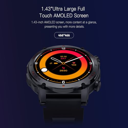 - شاشة ملونة HD مقاس 1.4 انش وأكثر من 200 قرص اصنعها بنفسك: الساعة الذكية للرجال والنساء مجهزة بشاشة ملونة عالية الدقة 466 × 466 كبيرة جدًا تعمل باللمس، مما يوفر جودة صورة استثنائية وحساسية لمس عالية الاستجابة، والتي يمكن أن تجلب لك تجربة بصرية فريدة وتفاعلية أفضل، مع تطبيق "جيب" المرافق، يمكنك تنزيل أكثر من 200 وجه ساعة مخصص مجانًا وتعيينها كجهاز كمبيوتر مكتبي للياقة البدنية تعتعقب