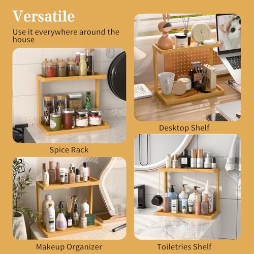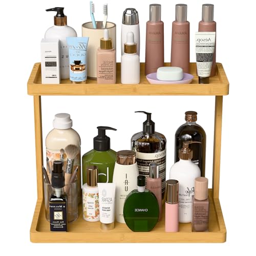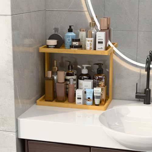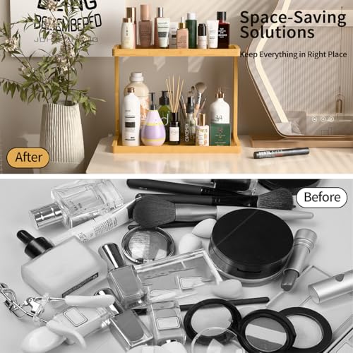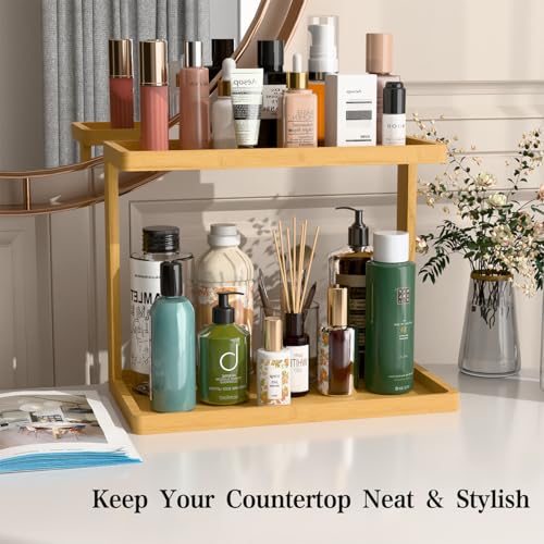 PEKER - منظم حمام من الخيزران من بيكر - رف تخزين صغير لمستحضرات التجميل والعطور والعناية بالبشرة - رف عرض مستحضرات التجميل الطبيعية لخزانة الملابس والحوض والمطبخ - 13.4 انش × 10.62 انش × 7.4 انش