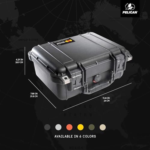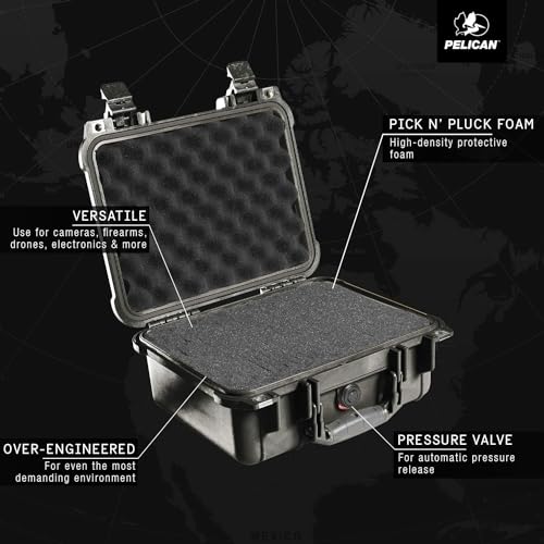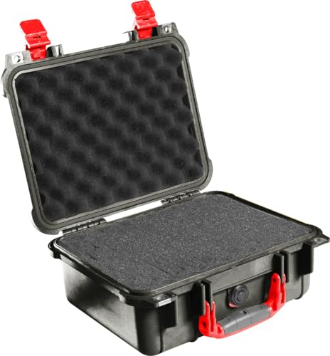 Pelican Color Case - حافظة حماية 1400 من بيليكان مزودة بفوم ومزالج حمراء - اسود، 1400-000-110-04، اسود، حافظة صلبة مقاومة للماء