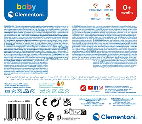 - رفيقة عناق رائعة وغنية بالنشاطات، قابلة للغسل وتحتوي على مشبك عملي لتثبيتها بأمان على العربة أو السرير.