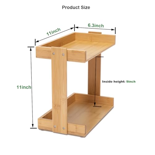 PELYN - منظم سطح الطاولة بطبقتين لمنضدة الحمام مكياج لعطور الزينة ومستحضرات التجميل والعناية بالبشرة ومنظم خزانة الملابس للحمام والمطبخ خيزران مدهون شفاف