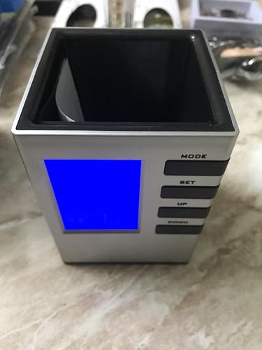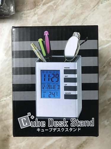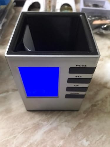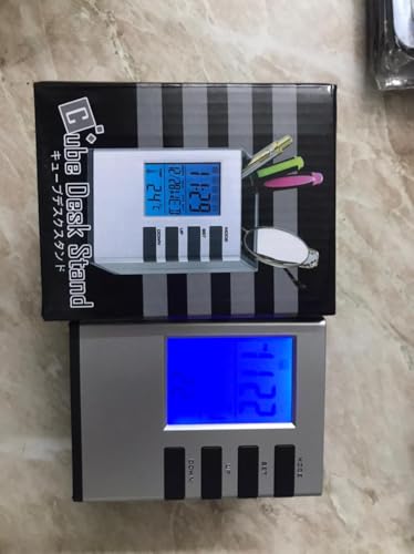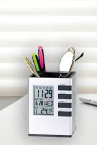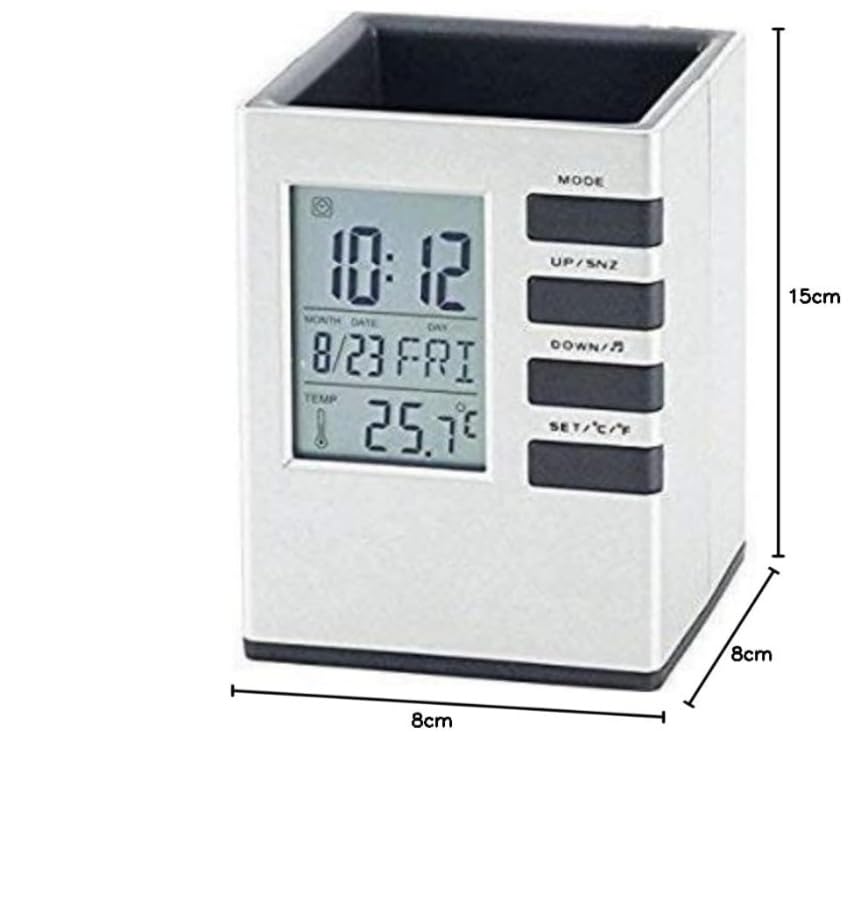 Generic - منظم اقلام للمكتب و ساعة منبه رقمية مع شاشة LCD، مزودة بإضاءة خلفية، منبه متعدد الأوضاع،