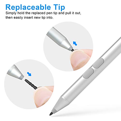 iafer - قلم ستايلس للسطح، يمكن تشغيله حتى 3000 ساعة عمل مع 1024 مستوى ضغط لتابلت سيرفس برو 9 اكس 8 7 6 5 4 3، سيرفس لاب توب 5/4/3/2/1 لابتوب ستوديو، سيرفس بوك1/2/3، سيرفس جو 1/2/3 (فضي)