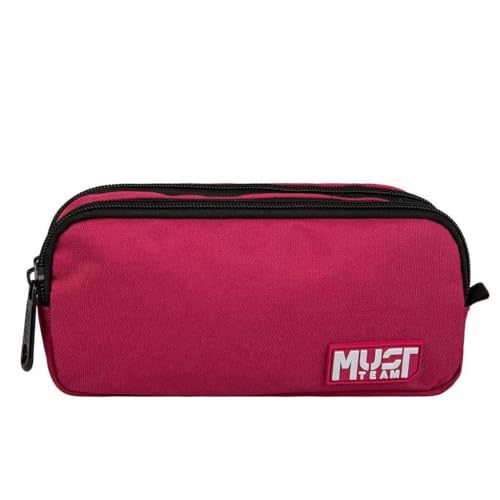 MUST - مقلمة برميل ماست تيم أحادية اللون بوردو مع حافظتين رماديتين