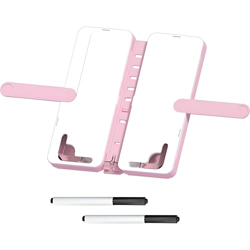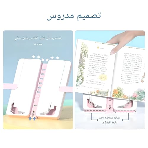 - ▪️رف قابل للتعديل والمزيد من الملحقات - مع تعديل الزاوية متعدد النطاقات ودعم ثابت، يمكن للمستخدمين اختيار زاوية القراءة الأكثر ملاءمة من سبعة خيارات مختلفة. بالإضافة إلى ذلك، يأتي صندوق الأقلام مع لوحة كتابة وأقلام قابلة للمسح للسماح بتسجيل الأفكار في أي وقت. الطبيعة المحمولة والمضغوطة يجعلان من السهل حمله.
