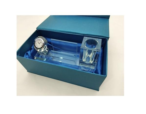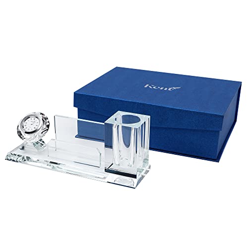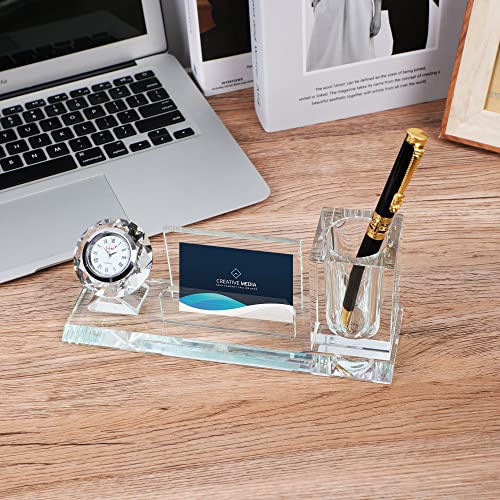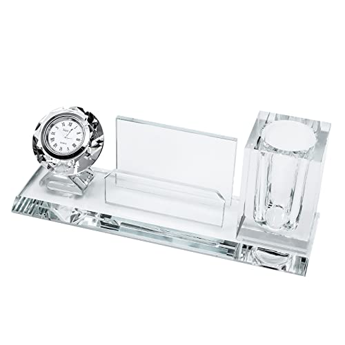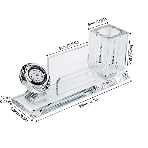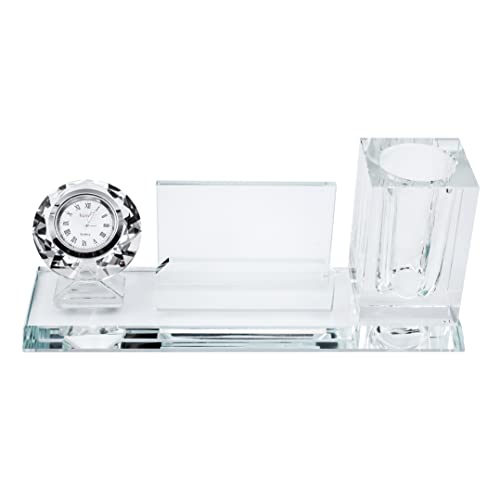 Generic - ساعة بلون فضي كريستالي من بينسل كينت مع حامل/منظم بطاقات العمل - زينة ملحقات للمنزل والمكتب، تناظري