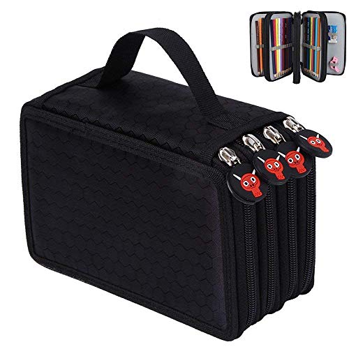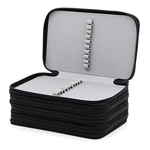Other - شنطة لحفظ الاقلام والفرش باربع طبقات وسوست و72 حامل اقلام مع يد لحملها، أسود، من اذر، قماش اكسفورد مطاط