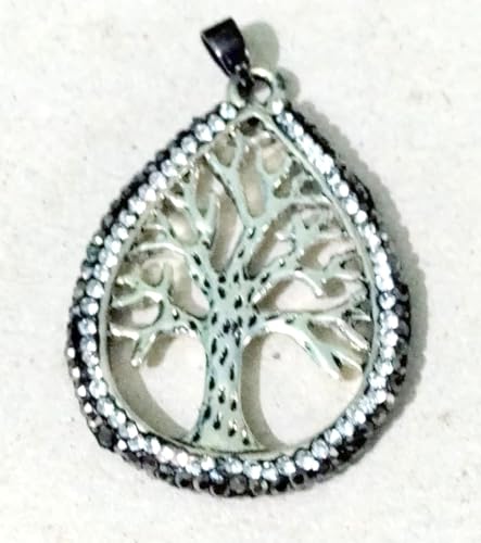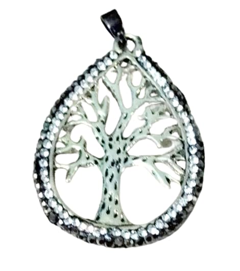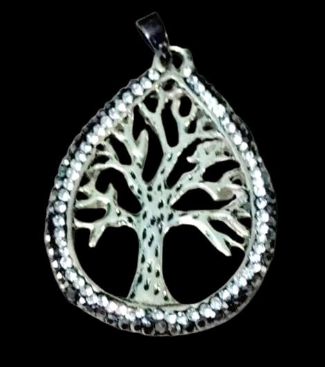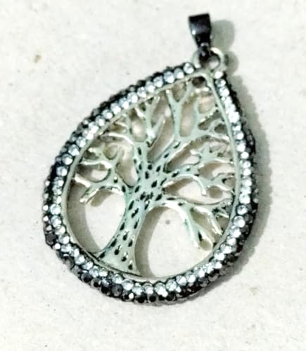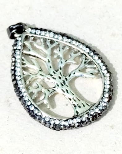 Generic - دلاية سلسلة شجرة الحياة مطعمة بأحجار زيركون أبيض و أسود الرائع مناسبة لجميع المناسبات وبسعر مخفض