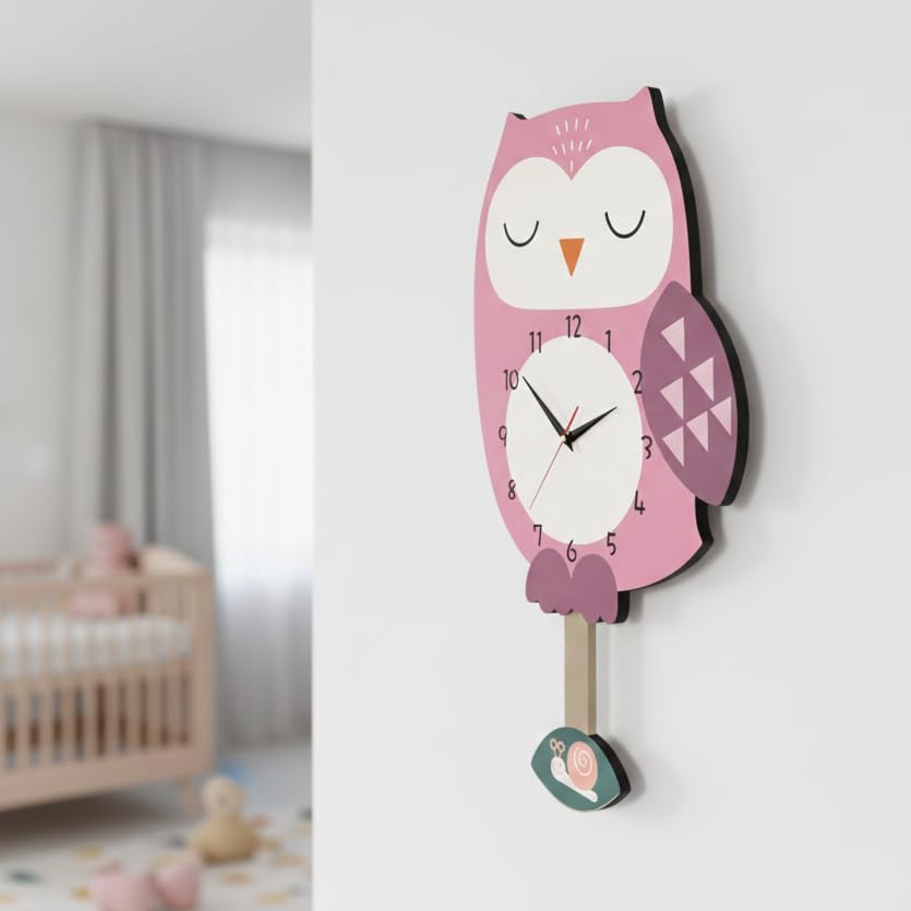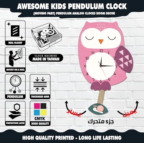 Generic - ساعة حائط ببندول متحرك بتصميم مبهج بشكل بومة مع جزء متحرك، ألوان زاهية وجودة عالية، حركة هادئة بدون صوت، سهلة التعليق، تضيف لمسة ديكور جذابة وتناسب جميع الأذواق
