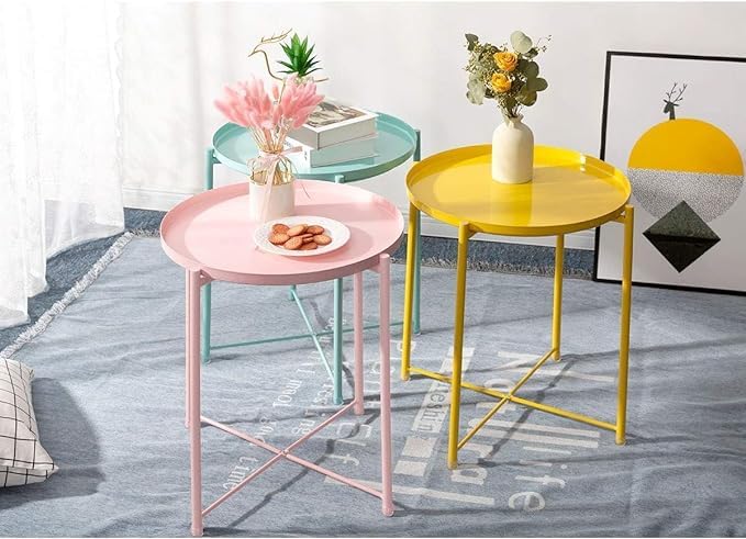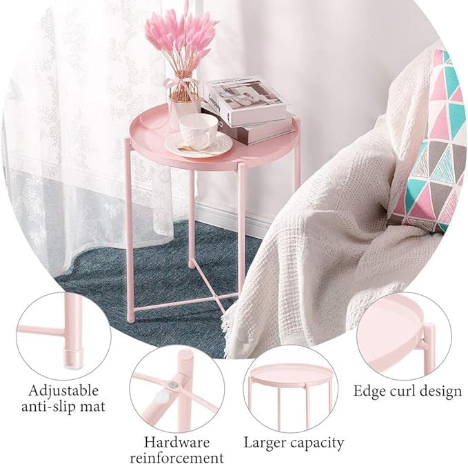 - 【صينية قابلة للإزالة】- يمكن استخدامها كصينية تقديم وتخزينها بسهولة مع هيكل توصيل على كلا الجانبين الأمامي والخلفي. تتميز طاولتنا المستديرة بتصميم حافة مجعدة لتجنب الحوادث المحتملة عند الحركة.