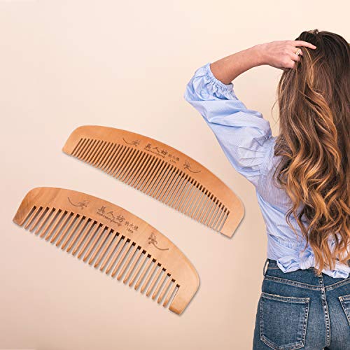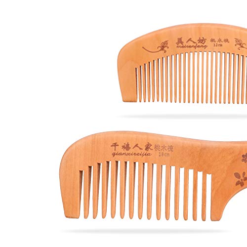 - [مشط شعر من الخشب الطبيعي بنسبة 100%] مصنوع من خشب الخوخ عالي الجودة يتميز برائحة خشبية طبيعية وأسنان خشبية مصقولة تساعد على تخفيف الشد وتحفيز فروة الرأس، مما يجعله رائعًا للتدليك. الحجم: مشط واسع الأسنان بطول 18 سم، مشط بأسنان رفيعة طوله 12 سم