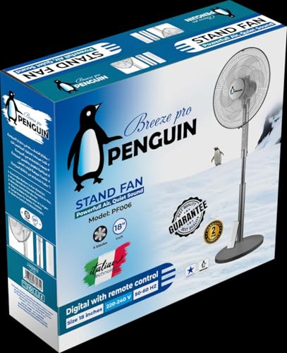 Penguin - مروحة بريز برو رقمية ستاند بعدد 6 شفرات مع جهاز تحكم عن بعد من بينجوين، لون فضي، مقاس 45 سم