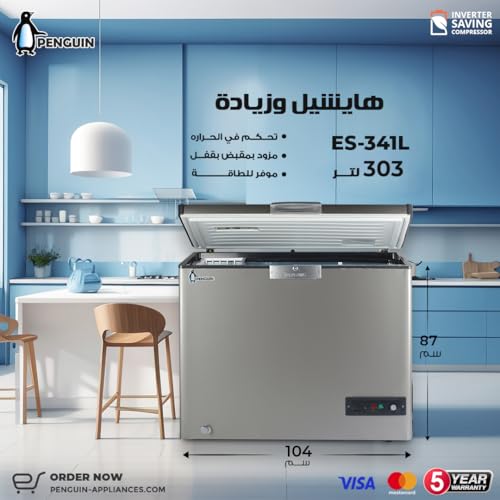 Penguin - فريزر أفقي بينجوين من الفولاذ المقاوم للصدأ من ال جي، فضي، 303 لتر، ES341L