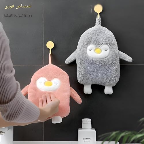 Generic - منشفة يد بتصميم البطريق - قماش ناعم وعالي الامتصاص مع حلقة تعليق، مثالية للمطبخ والحمام، متوفرة بألوان متعددة نابضة بالحياة لسهولة الاستخدام (قطعة 2)