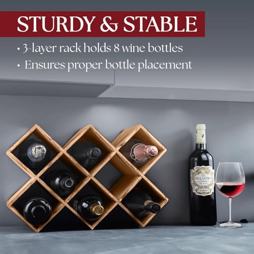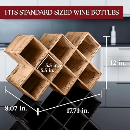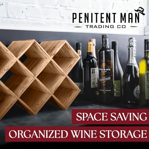 Penitent Man Trading Co - حامل زجاجات يوضع على سطح الطاولة لديكور البيت الريفي لتخزين الزجاجات مع حامل زجاجات، رف زجاجات صغير لسطح الطاولة لرفوف المشروبات قائم بذاته، حامل رف خشبي