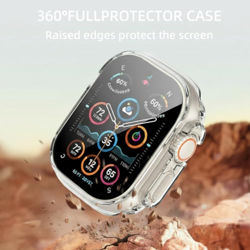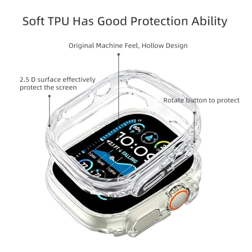 Penom - [عبوتان] جراب ممتص للصدمات متوافق مع ساعة ابل الترا 49 ملم، اطار واقي ناعم من البولي يوريثين الحراري مقاوم للصدمات والخدوش لسلسلة اي ووتش 8 الترا 49 ملم [بدون واقي شاشة] - شفاف