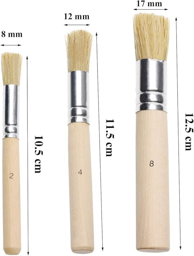 - تحتوي العبوة على 3 قطع من فرش الاستنسل لتلبية احتياجاتك المختلفة. الحجم: قطر فرشاة الاستنسل الصغيرة 8 ملم، الفرشاة المتوسطة 12 ملم، الفرشاة الكبيرة 17 ملم. المواد: فرشاة رسم استنسل مصنوعة من شعر ذو شعيرات طبيعية مع مقبض خشبي رائع لجميع أنواع رسم الاستنسل. فرشاة رسم استنسل مثالية للألوان الزيت والألوان المائية والاكريليك على سطح أملس مثل الخشب والجدار والورق وأكثر من ذلك. فرشاة رسم استنسل رائعة للاستخدام للأطفال والكبار على حد سواء. (ملاحظة: يمكن نقع رأس الفرشاة في ماء دافئ قبل الاستخدام لأول مرة.)