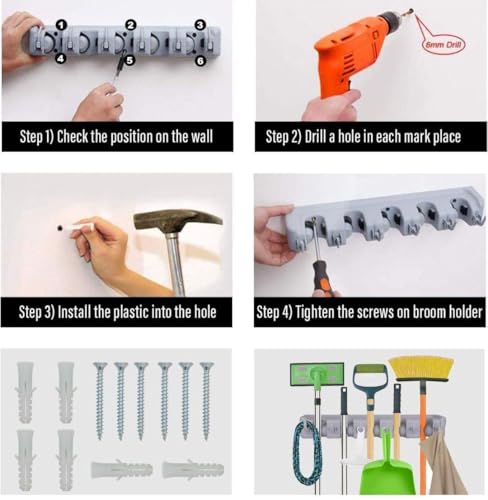 • حامل مكانس خماسي حامل مكانس الهوكات لتعليق الفوط او الجاروف او الفرش او مستلزمات التنظيف عموما