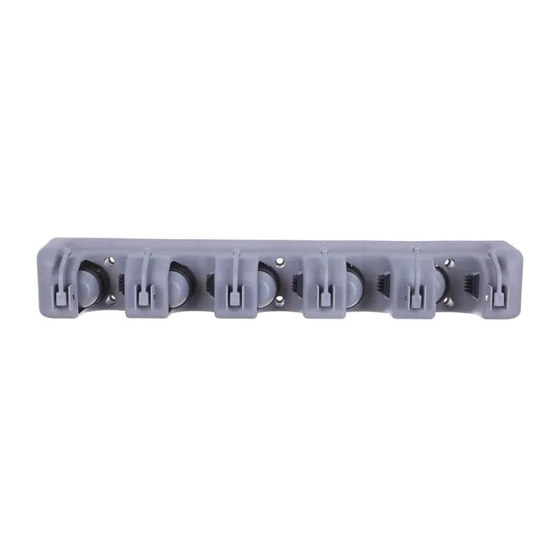 - يحتوي الحامل على خمسة عيون، مما يسمح بتعليق ما يصل إلى خمس مكانس مختلفة بشكل آمن ومنظم.