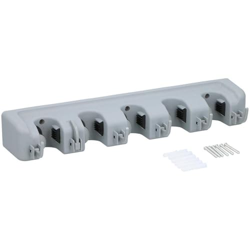 - يوفر حامل المكانس الخماسي مساحة تخزينية كبيرة للمكانس والقضبان الخاصة بالتنظيف.