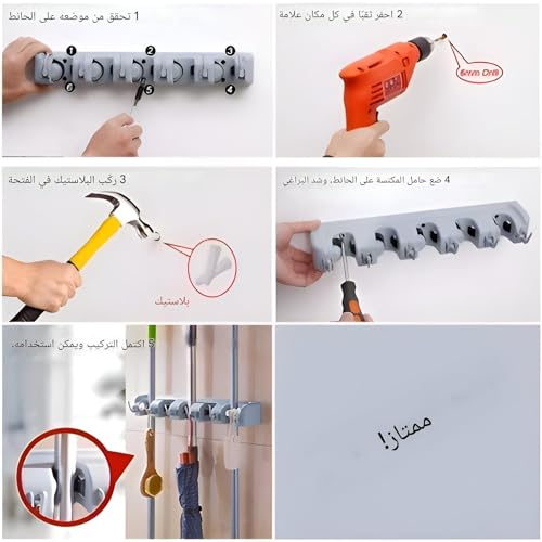 - 【خطافات متينة مضادة للانزلاق للمقشة والشرشوبة】- أصبح تخزين المقشة الخاصة بك سهل. خطافات متينة رائعة لتعليق المقشات الصغيرة أو لوازم التنظيف الأخرى. حافظ على كل شيء مرئيًا وجاهزًا عند الحاجة.
