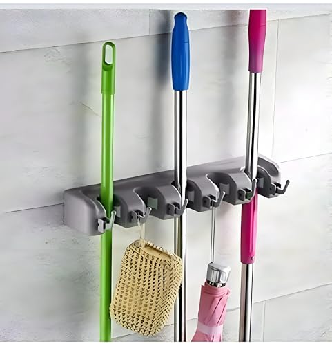 Generic - حامل مكنسة خماسي - حامل معزز يثبت على الحائط لحمل الشرشوبة والمقشات، مثالي لتحسين المساحة والحفاظ على معدات التنظيف الخاصة بك في متناول اليد وبطريقة مرتبة