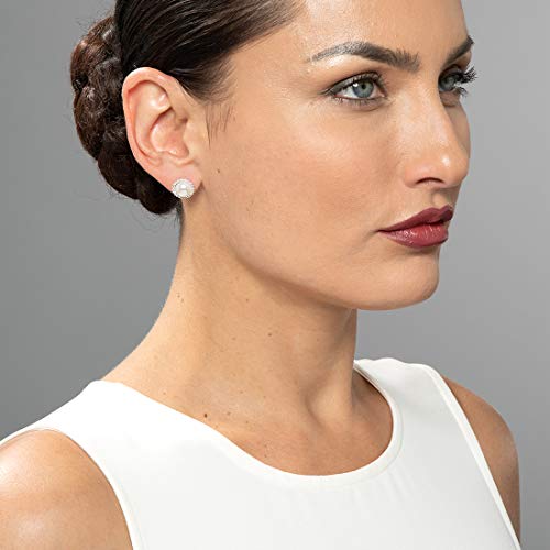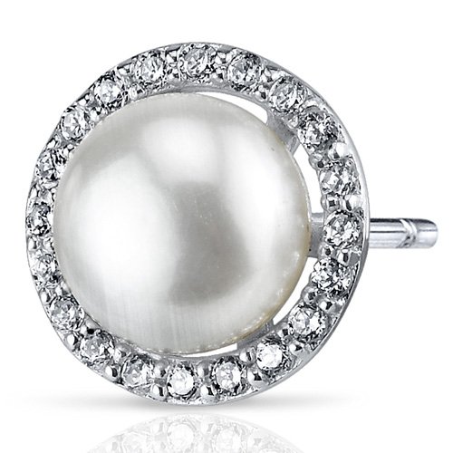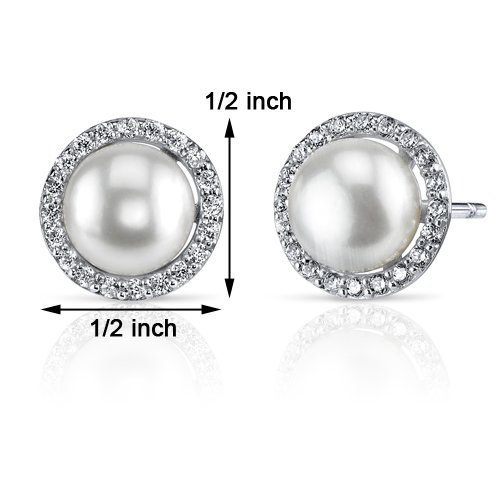 Peora - قلادة وأقراط من الفضة الإسترلينية على شكل لؤلؤ أبيض مستزرعة في المياه العذبة الصغيرة، تصميم دائري دائري من الحياة, حجر كريم من الفضة الاسترلينية, لؤلؤ