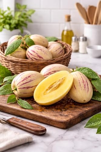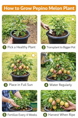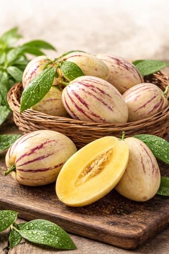 Generic - شتلات البطيخ من بيبينو - نبات فاكهة استوائية سولانوم موريكاتوم، شجرة فاكهة صحية سهلة النمو، غلة عالية، مثالية لحديقة المنزل، الفناء الخلفي، او الزراعة الداخلية، فاكهة بيبينو غريبة حلوة وعصرية
