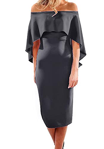FG - فستان بنمط بيبلوم - مناسبه خاصة - لون رصاصي- للنساء، من FG