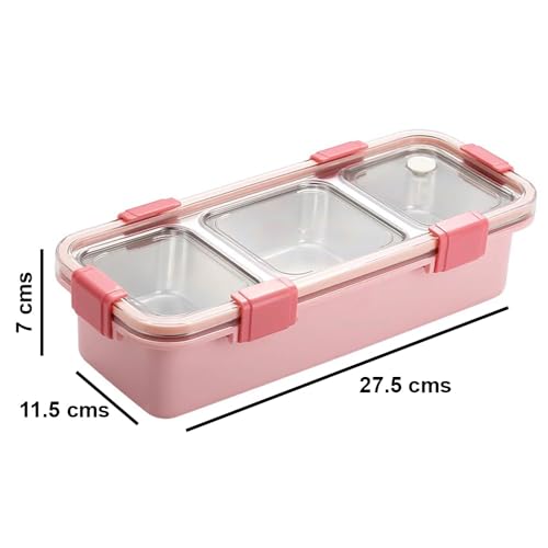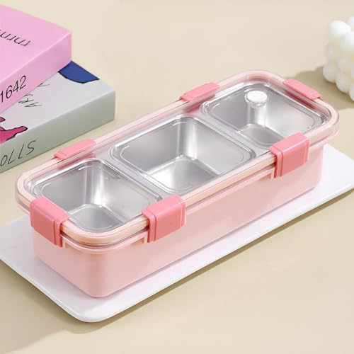peplyf - لانش بوكس ميل بادي من بيبليف | ستانلس ستيل مانع للتسرب | وجبات خفيفة ووجبات صلبة | 3 اقسام (بينك)
