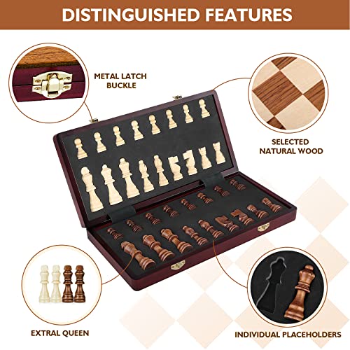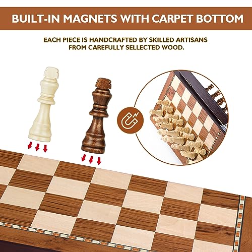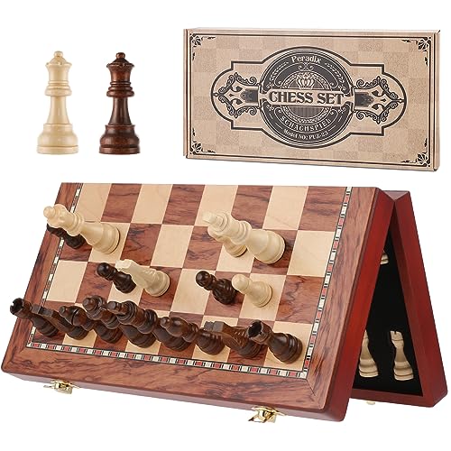 Peradix - لعبة شطرنج خشبية من بيرادكس- لوح شطرنج مغناطيسي قابل للطي مصنوع يدويا مع قطع شطرنج، لعبة شط كبيرة مناسبة للسفر للأطفال والكبار 35 × 35 سم