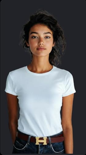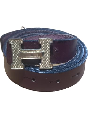 Perfect Fashion - حزام جلدي بمشبك على شكل حرف H من بيرفكت فاشون ديزاينر، لون بني، قطع معدنية ذهبية اللون