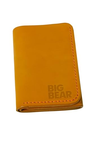- تصميم فاخر: محفظة جلد بيج داكن مصنوعة يدويًا تتميز بخياطة متباينة مميزة وشعار الدب الكبير منقوش على الجزء الخارجي