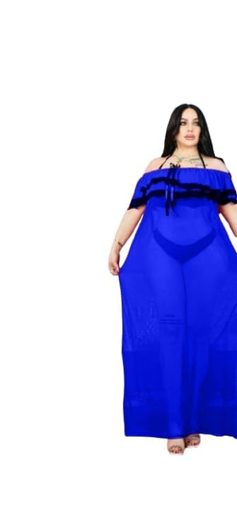Perfect Fashion - فستان ماكسي شبكي شفاف مكشوف الكتفين مقاس كبير من بيرفكت فاشن، مكشكشة دانتيل اسود، ملابس سهرة L602