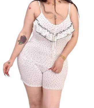 Perfect Fashion - سالوبيت قصير بدون أكمام بتصميم منقط بولكا للنساء من بيرفيكت فاشن، أبيض، حواف مكشكشة تناسب وزن حتى 80 كجم، H230