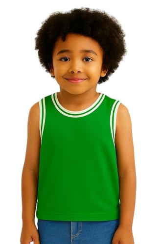 Perfect Fashion - قميص رياضي بدون اكمام من قماش جيرسيه لكرة السلة للشباب من بيرفكت فاشن، لون اخضر وابيض بدون اكمام للاداء الرياضي للاطفال