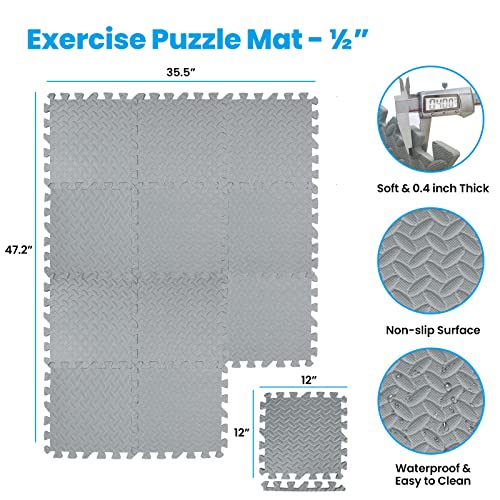 perforlld - مجموعة سجاد أرضية على شكل بازل من بيرفللد للتمارين مصنوعة من فوم ايفا من بلاط أرضية متشابك، سجادة فوم لصالة الألعاب الرياضية مقاس 30.48 × 30.48 سم، لمعدات المنزل وصالة الألعاب الرياضية، 12 قطعة