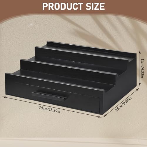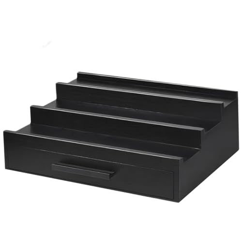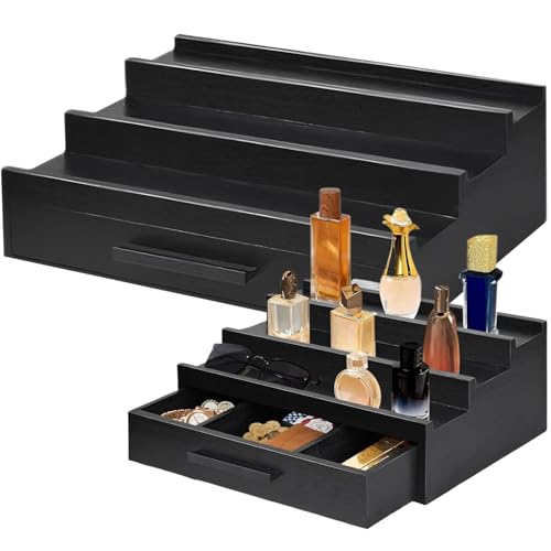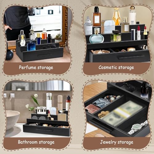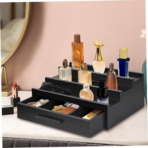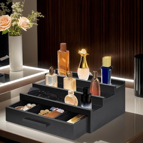MOUNTTU - منظم عطور، عرض عطور خشبي اسود من 3 طبقات مع درج ومساحة تخزين مخفية، منظم حامل عطر انيق بسيط للكولونيا ومزيل العرق، مقاس L