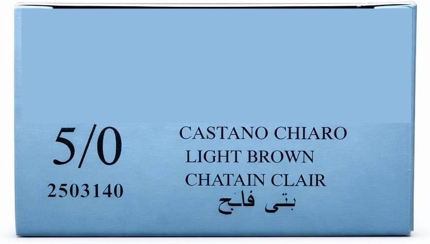 - درجة اللون 5/0 – بني فاتح / كاستانو كيارو: درجة لون بني فاتح مصممة للحصول على لون شعر ناعم وطبيعي المظهر.